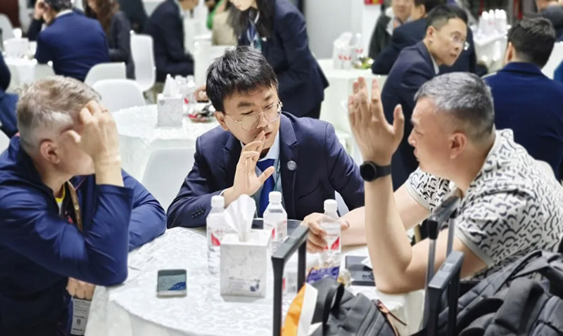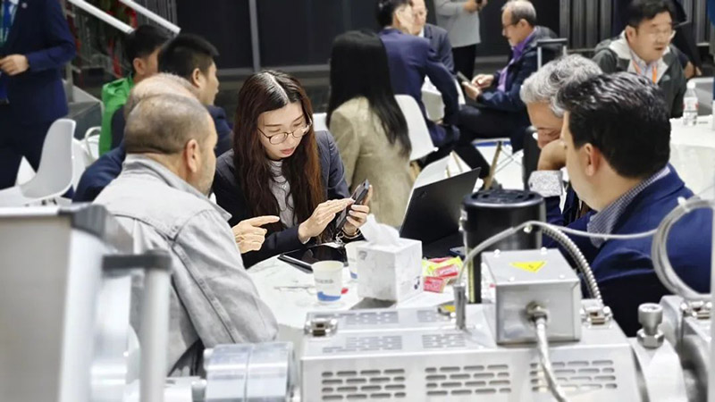 在展位現場,隨處可見前來參觀交流的專業(yè)觀眾,有的是咨詢集團產品,有的是咨詢的集團業(yè)務。洽談區(qū)已經不能滿足大家的熱情,展臺內,展機旁,都是大家相談甚歡的身影。